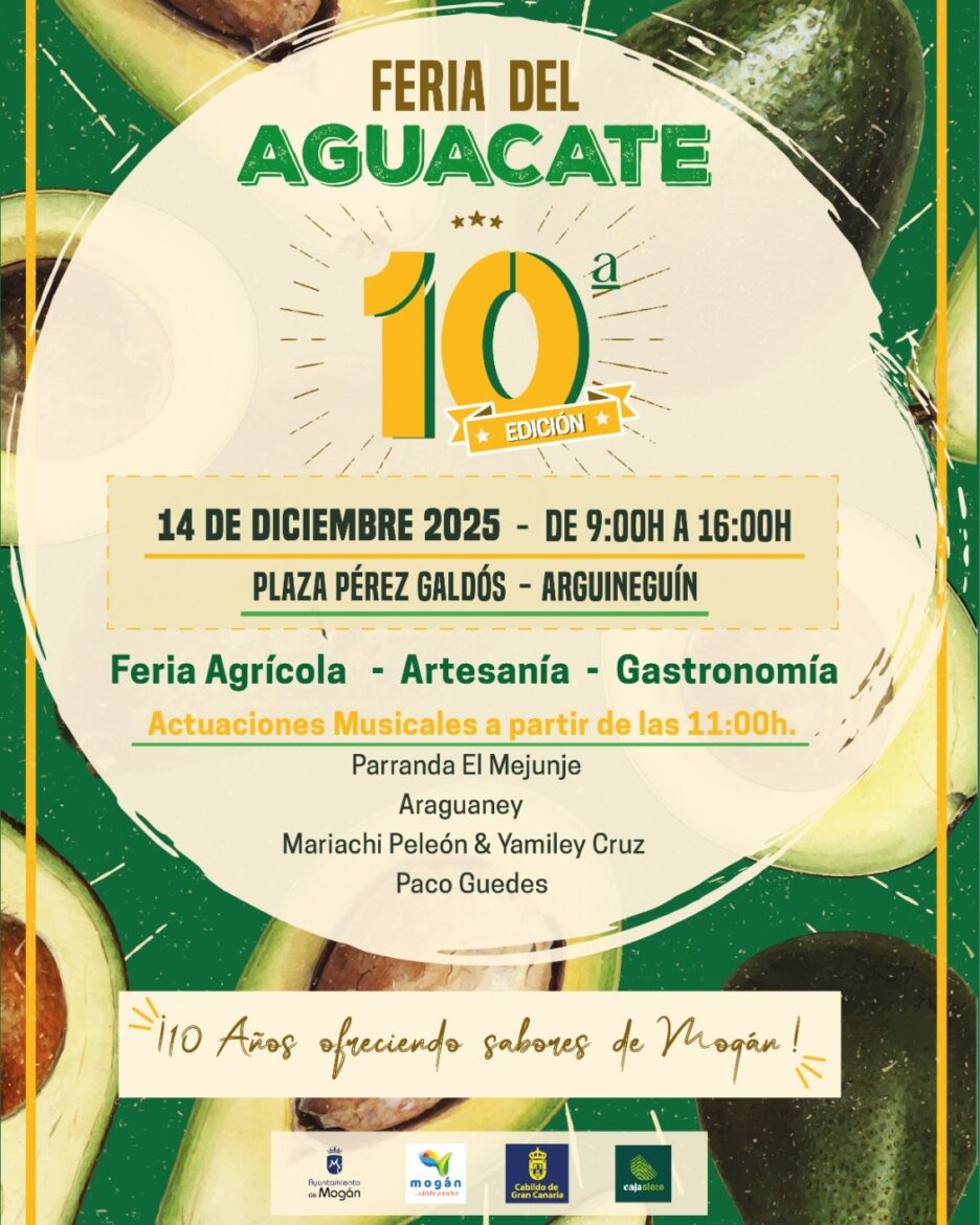 𝐜𝐨𝐧 𝐟𝐨𝐫𝐦𝐚𝐜𝐢𝐨́𝐧, 𝐡𝐨𝐦𝐞𝐧𝐚𝐣𝐞 𝐲 𝐬𝐮 𝐩𝐫𝐨𝐝𝐮𝐜𝐭𝐨 𝐞𝐬𝐭𝐫𝐞𝐥𝐥𝐚.Arguineguín se prepara para la décima edición de la Feria del Aguacate de Mogán, que tendrá lugar el domingo 14 de diciembre, de 9:00 a 17:00 horas, en la plaza Pérez Galdós.